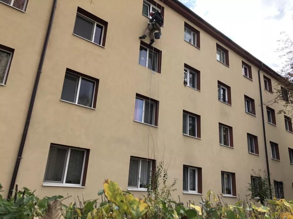 Folosim echipamente de lucru si protectie speciala, precum si materiale si scule profesionale pentru lucrul la inaltime. Lucram in conditii dificile din punctul de vedere al spatiului de manevra sau in perimetre in care instalarea unor schele ar fi chiar imposibila.